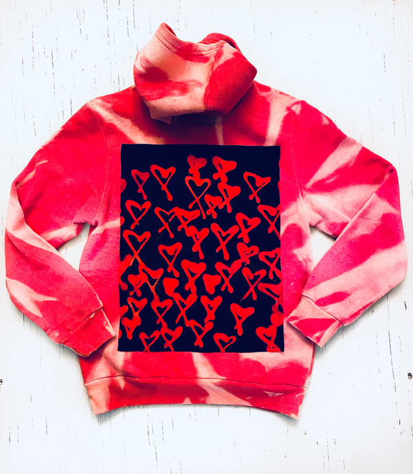 OG Bleach Dyed Hoodie with Oxydyed Hearts Adult